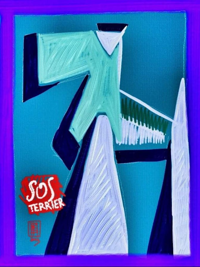 Mit Logo har jeg håndtegnet efter det fantastiske billede af den Italienske kunster Simone Tinazzi Martini. Simone har tegnet det originale billede til SOS Terrier. 1000 tak Simone for at lade mig bruge den kopi jeg har lavet af dit dejlige billede.