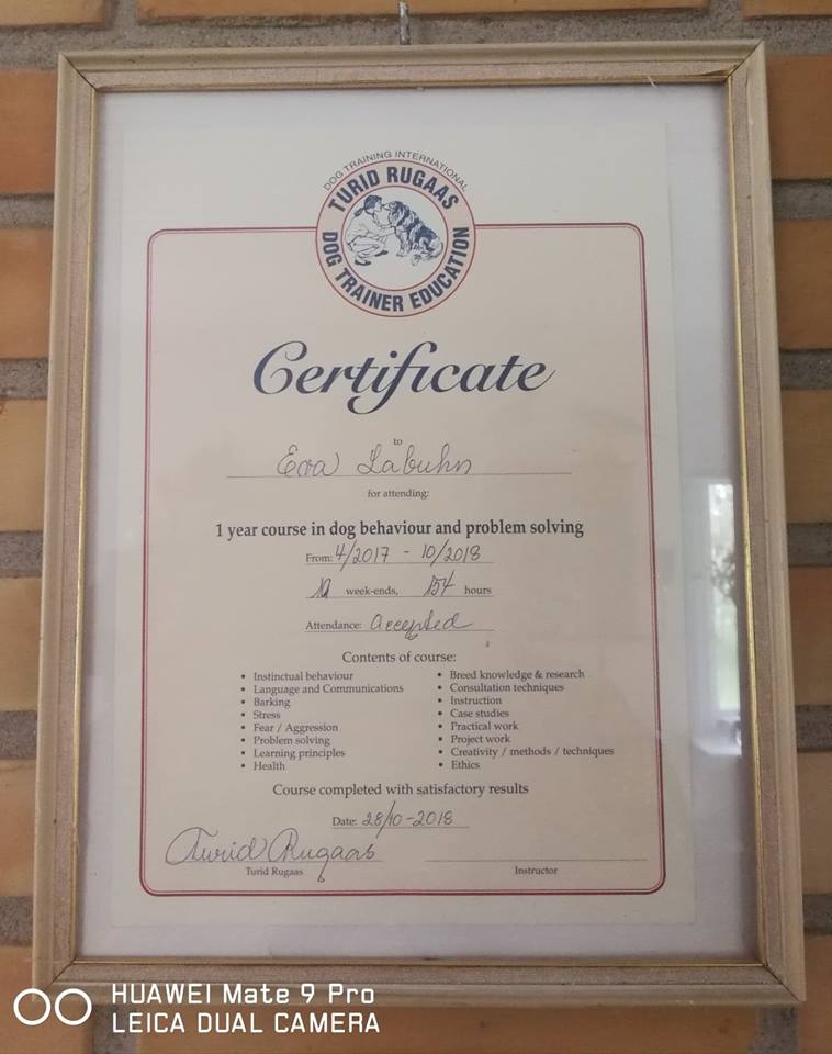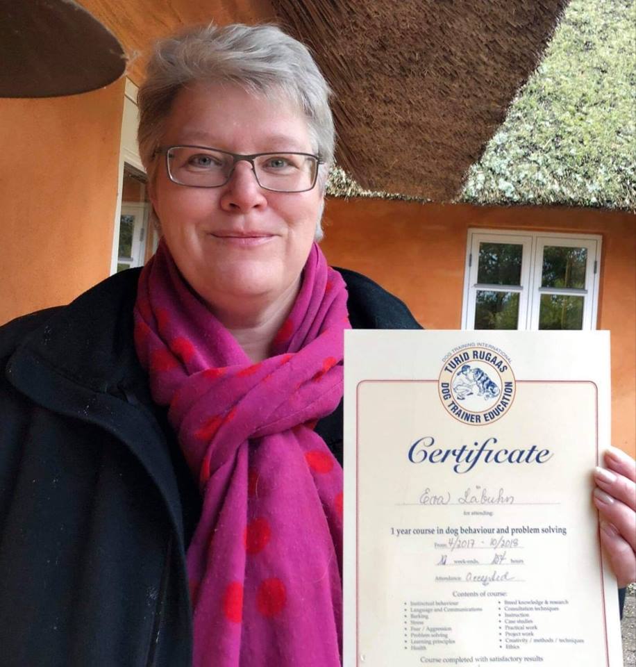 Adfærdsbehandler og hundetræner i 2018 Det er så dejligt at være i mål med en længere uddannelse, ved Turid Rugaas, og kunne hænge eksamensbeviset op på væggen, som