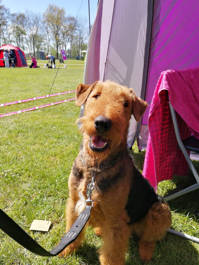 Der er nu kommet en del Airedale med dårlige knæ, derfor fik jeg Boss undersøgt for det i bedøvelse sammen med HD og AD billederne og Boss’s status på knæ er reg. i DKK. Han er fri for Patella Luxation (løse knæskaller som en del små hunde lider af og nu altså også store hunde) Og faktisk er det sådan at knæ undersøges før bedøvelse og det er den status der reg. Men ikke mindst havde Boss også helt faste knæ der ikke kunne rokkes en millimeter selvom han var i bedøvelse.