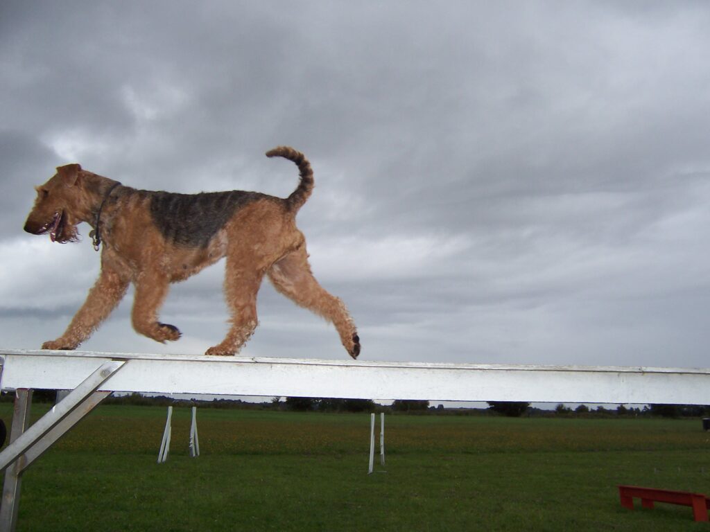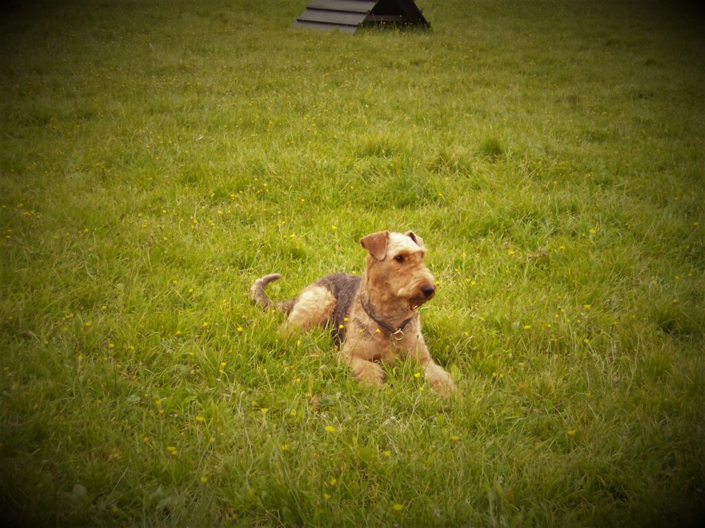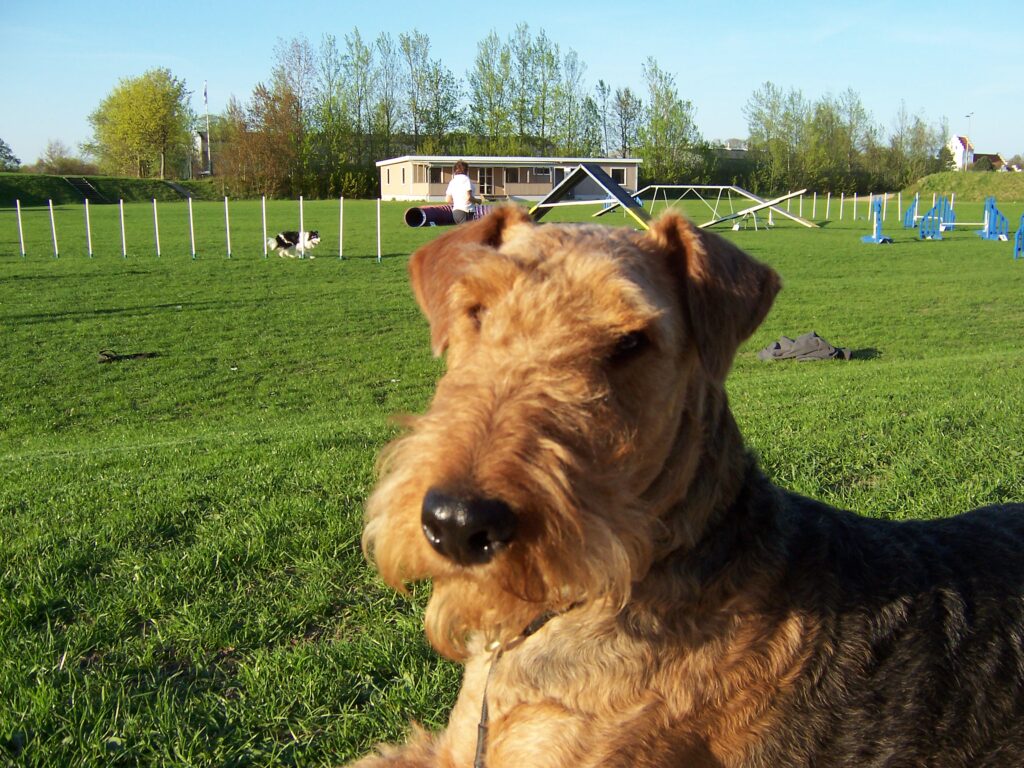 I 2004 kom KATY Airedale Terrier til Højen, en længe planlagt og ønsket avlshund og her på landet hvor vi bor nu, er det nødvendigt at gå til træning med sin hund, hvis man vil socialisere dem. Katy var en stor overraskelse for hun elskede simpelthen at træne, ikke som min første airedale, og så er det jo synd og skam ikke at blive ved.